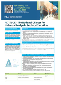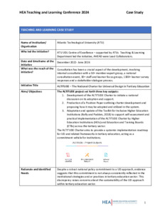 This case study from Atlantic Technological University (ATU) outlines the development of ALTITUDE – The National Charter for Universal Design in Tertiary Education (December 2022–June 2024). Led by the ATU UDL Centre of Excellence with national partners, the project produced three key outputs: the ALTITUDE Charter, a Position Paper/Technical Report, and an updated Toolkit for Inclusive Higher Education Institutions to support implementation. The development process involved extensive national consultation, including expert groups, stakeholder dialogue, focus groups, and over 1,300 learner survey responses. The Charter provides a systemic roadmap for embedding universal design across the tertiary sector.