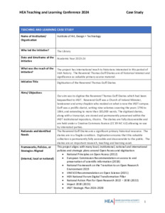 This case study from the Institute of Art, Design + Technology (IADT) describes the digitisation of the Reverend Thomas Goff Diaries during the 2023–24 academic year. The project involved digitising nine volumes (1796–1844) and more than 185,000 words, creating a full transcript, and preserving the collection within the IADT institutional repository, Illustro, under a CC BY-NC 4.0 licence. Supported through SATLE funding, the initiative ensures permanent preservation, full discoverability, and public access to this significant primary historical resource.