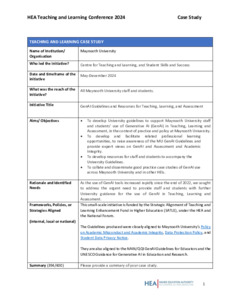 This case study from Maynooth University outlines the development of GenAI Guidelines and Resources for Teaching, Learning, and Assessment (May–December 2024), led by the Centre for Teaching and Learning and Student Skills and Success. The initiative developed high-level, principles-based guidelines for staff and students on the ethical and responsible use of Generative AI, supported by professional learning activities and companion resources. The project adopted a staff–student partnership approach, including student-authored guidelines and the creation of a “GenAI & My Learning Hub,” and aligns with university policies and national and international guidance.