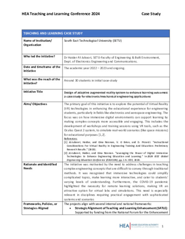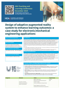 Al-Juboori, Haider (2024) Design of adaptive augmented reality system to enhance learning outcomes: a case study for electronic/mechanical engineering applications. In: Higher Education Authority Teaching and Learning Conference 2024, Dublin.