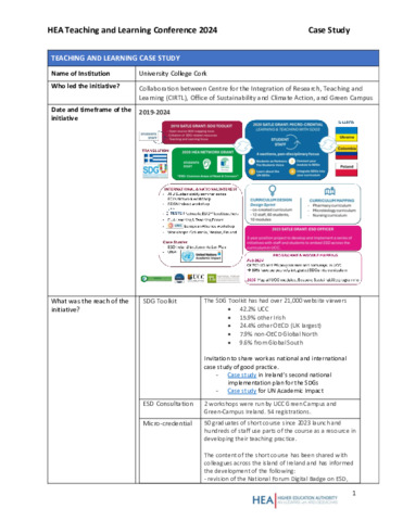 O’Mahony, Catherine and Nyaluke, David (2024) Integrating Education for Sustainable Development in UCC: toolkits, digital badges and people. In: Higher Education Authority Teaching and Learning Conference 2024, Dublin.