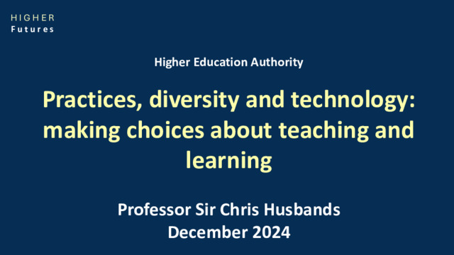 Husbands, Chris (2024) Navigating the Triple Challenges of Practice, Diversity, and Technological Change. In: Higher Education Authority Teaching and Learning Conference 2024, Dublin.