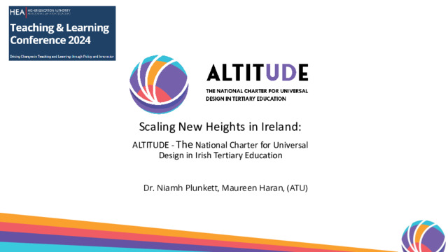 Plunkett, Niamh and Haran, Maureen (2024) Scaling New Heights in Ireland: ALTITUDE The National Charter for Universal Design in Irish Tertiary Education. In: Higher Education Authority Teaching and Learning Conference 2024, Dublin.