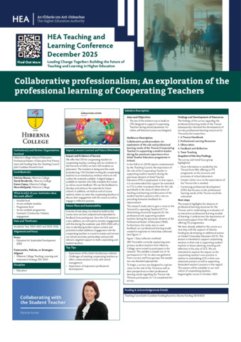 Nunan, Patricia, Broderick, David, Casey, Karen and McQuaid, Nora (2026) Collaborative professionalism: An exploration of the professional learning of Cooperating Teachers. In: Higher Education Authority Teaching and Learning Conference 2025, 2025.