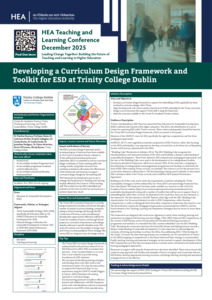 Rooney, Pauline, Stout, Jane, Ní Shé, Caitríona, Gallagher, John, Roche, Cicely, Forde, Cuisle, Hodgers, Jonathan, McAvinia, Claire, O’Connor, Kevin and Byrne, Nicola (2026) Developing a Curriculum Design Framework and Toolkit for ESD at Trinity College Dublin. In: Higher Education Authority Teaching and Learning Conference 2025, 2025, Dublin.
