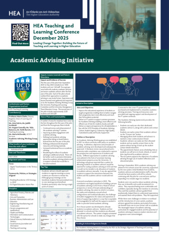Clarke, Marie, Galvin, Aine, Archbold, Judith, Connolly, August, Baturova, Yulia, Barrett, Keith and McDonald, Maria (2026) Academic Advising Initiative. In: Higher Education Authority Teaching and Learning Conference 2025, 2025, Dublin.