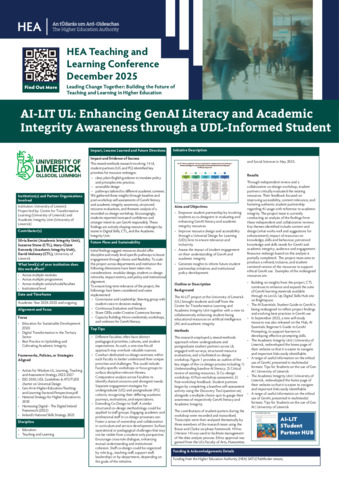 Benini, Silvia, Stone, Suzanne, Kennedy, Mary-Claire and Moloney, David (2026) AI-LIT UL: Enhancing GenAI Literacy and Academic Integrity Awareness through a UDL-Informed Student. In: Higher Education Authority Teaching and Learning Conference 2025, 2025, Dublin.